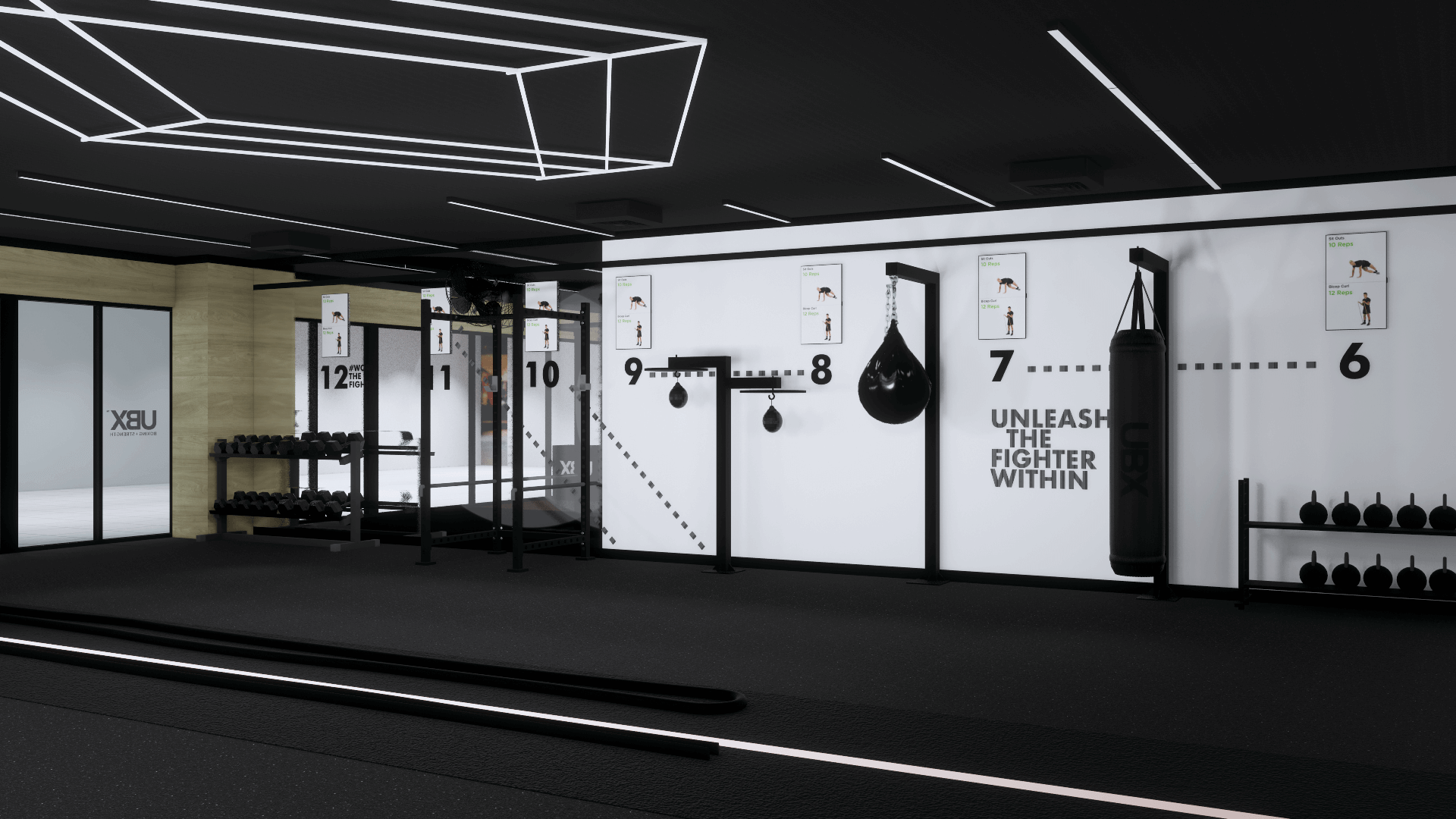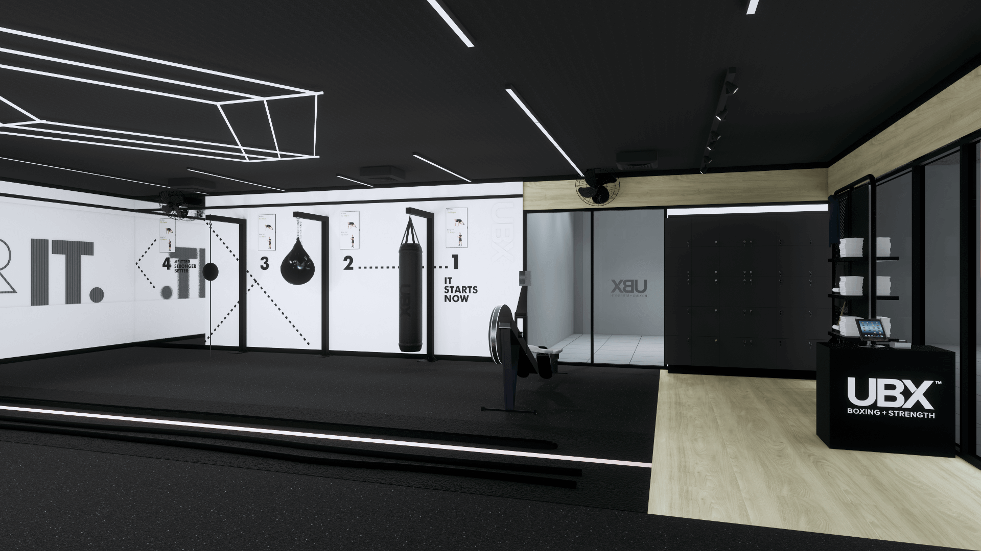 UBX Training is a purpose built boxing + strength training facility, designed to deliver workouts that are exciting, convenient and most of all effective. The design provides a strong and bold interior for our members that inspires them every time they come in to train. Explore each aspect of the club, and learn more about the key features that help us deliver on what our members want.